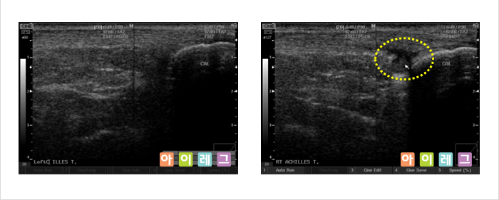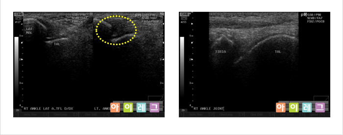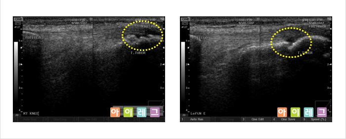 이상(물이 차거나 염증 혹은 손상이 생긴 경우)을 진단하는 검사입니다. 환자의 진찰과