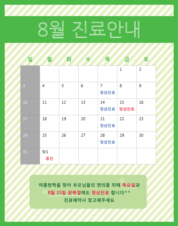 8월 15일 광복절 (금) 오전 9시~ 오후 6시