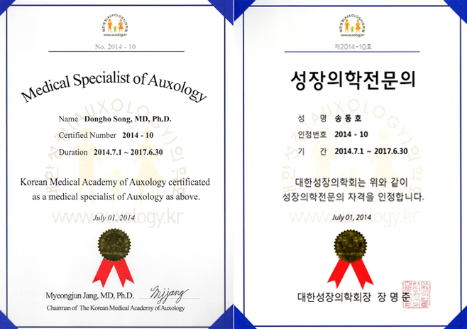 대한성장의학회 성장의학전문의 아이레그 송동호원장님 위촉!!