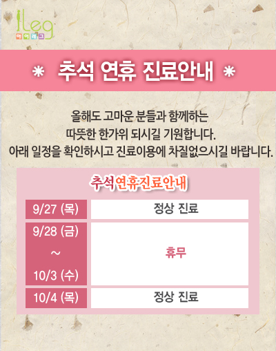 2012년 추석연휴기간동안 아이레그 의원 진료/휴무 일을 안내 드립니다.