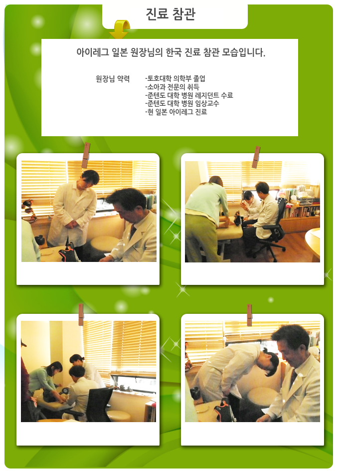 아이레그 일본 원장님 의 한국본원 진료 참관 모습입니다.