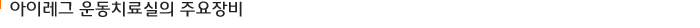 아이레그의원 운동치료실에서는 의과학적으로 입증이 된 프로그램을 질환에 따라 또 개개인의 상태에 맞춰 제시를