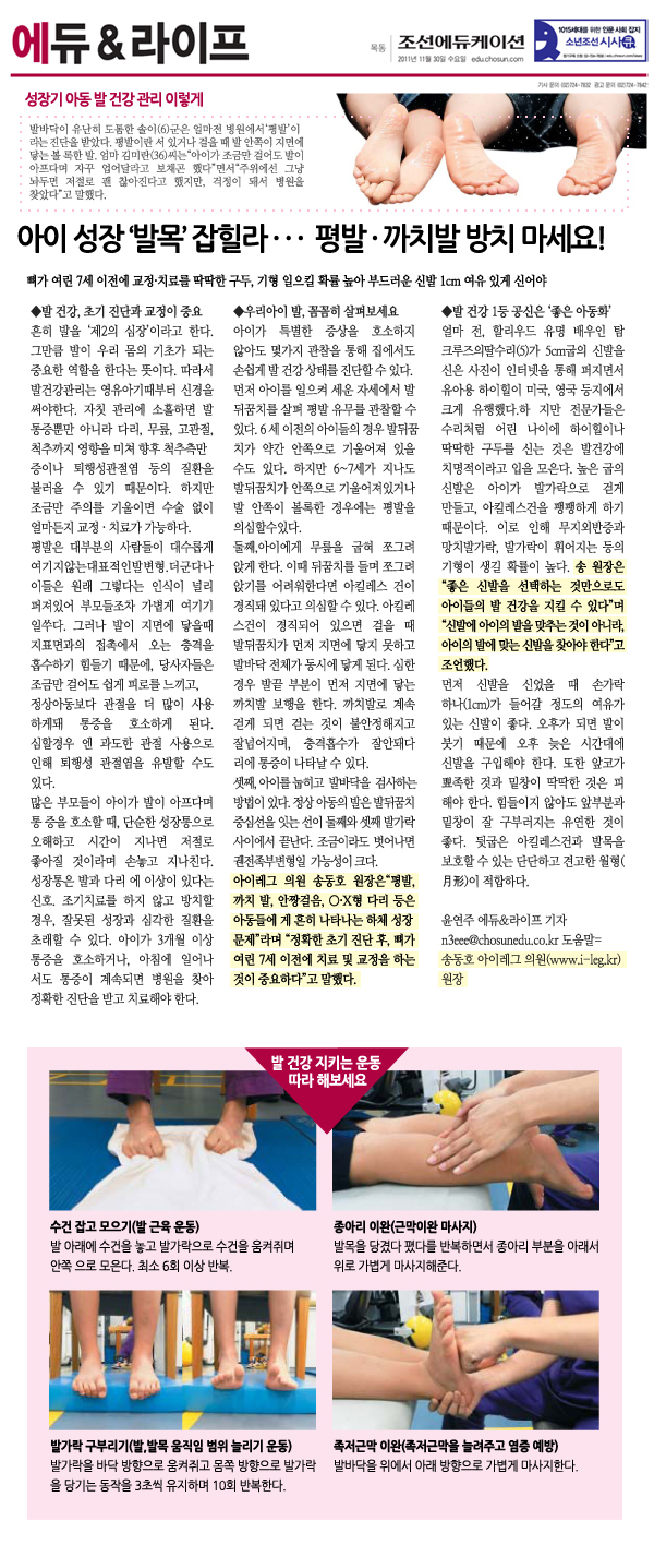 조선에듀케이션 에듀&라이프 '7면 성장기 아동 발 건강 관리 요령'