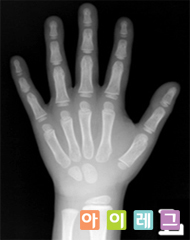 성인키를 예측하는 검사입니다. 대상자의 왼쪽 손과 손목뼈를 방사선 촬영하여 화골핵의