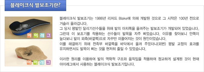블레이크 이전에는 단순히 발 아치 부분 쪽을 높여서 아치를 지지하는