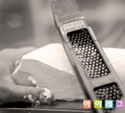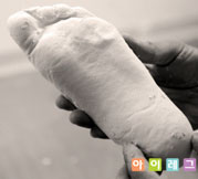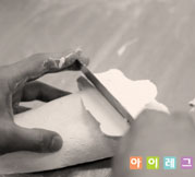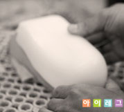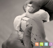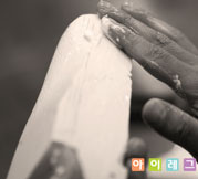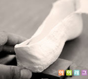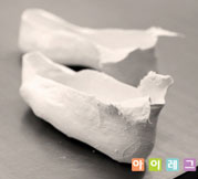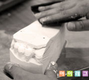 작업이 끝난 양형석고의 겉표면을 사포로 매끈하게 다듬어 양형석고를 완성시킨다.