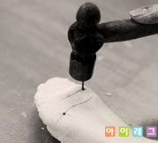 플라스틱에 새겨나온 석고 모양을 따라 그라인딩 한다.