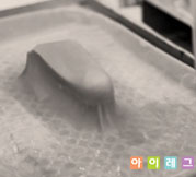 가열된 플라스틱을 석고위에 얹어서 진공성형을 한다.
