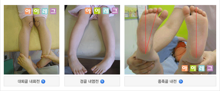 그러나 이런 아이들 중 실제로는 경골내염전이 심한 경우가 많기 때문에 걷는 모습만으로 안심하지 말고 전문의의 진단을 받는 것이 좋습니다.