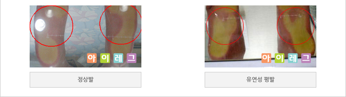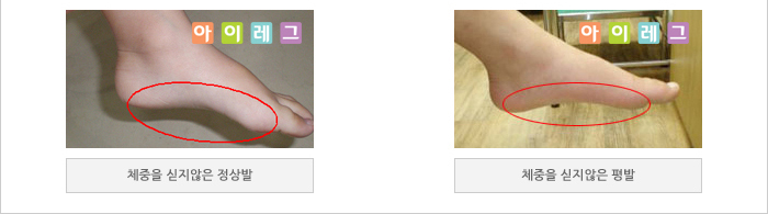 싣지 않은 상태의 평발과 정상발의 비교 |