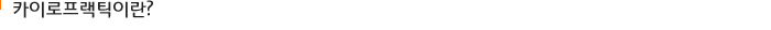 카이로 프랙틱은 손을 뜻하는 ‘카이로 (cheir) '와 치료를 뜻하는 ‘프랙틱스 (praxis) '의 합성어로 , 약물이나 수술을 사용하지 않고 카이로프랙틱 전문 의사가 직접 손으로 치료함을 뜻합니다 .