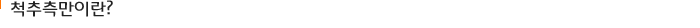 정상적인 척추와는 달리 전반적인 척추가 'S' 자나 'C' 자 모양으로 휘어지고 , 동시에 척추 마디마디가 회전하여 틀어지는 형태로 , 단순하게 비틀어진 변형이 아니라 회전과 더불어 입체적으로 변형된 상태을 말합니다 .