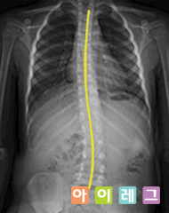 어린나이에도 불구하고 잘못된 자세와 합쳐져 척추측만증이 있는